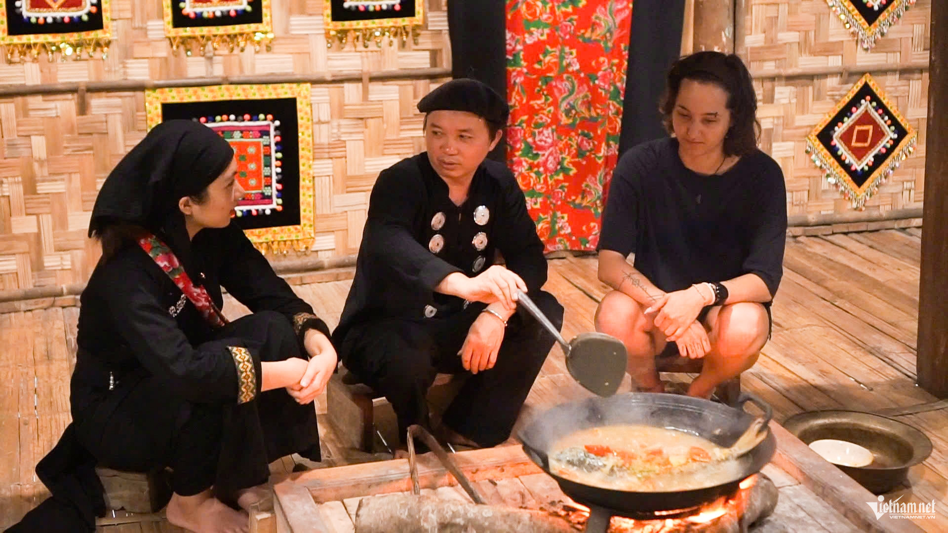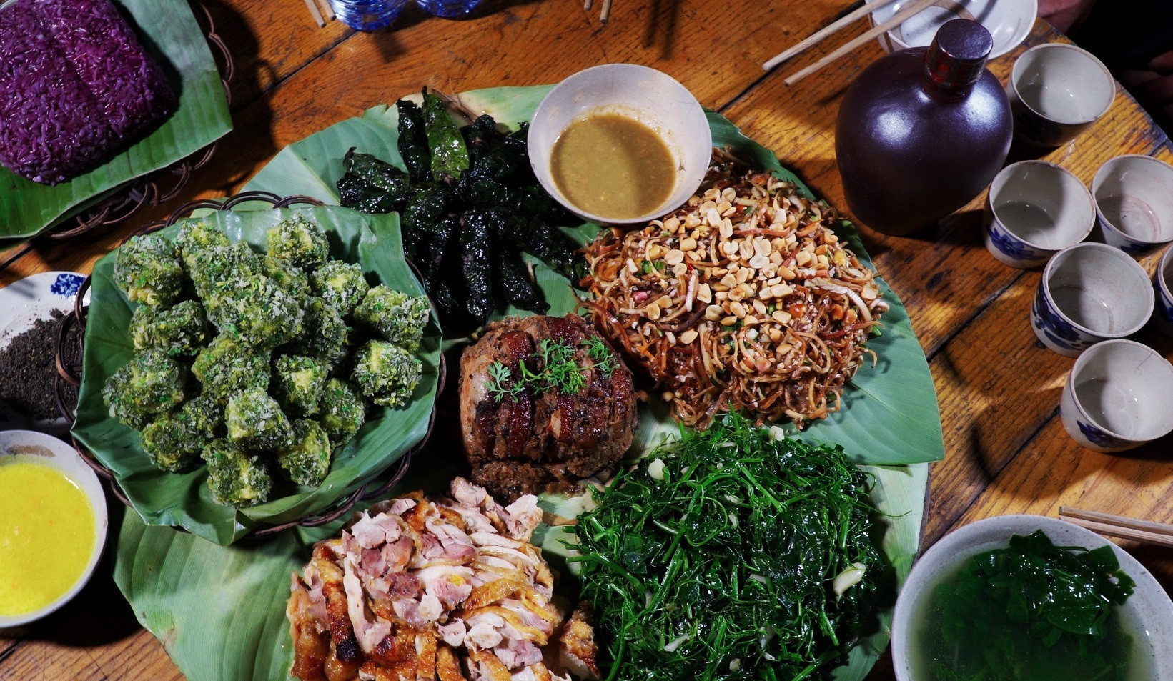 She also helped local families prepare traditional feasts featuring black glutinous rice, braised pork belly (khau nhuc), carp simmered with fermented rice, stir-fried pork with sour bamboo shoots, and tofu wrapped in green tea leaves.