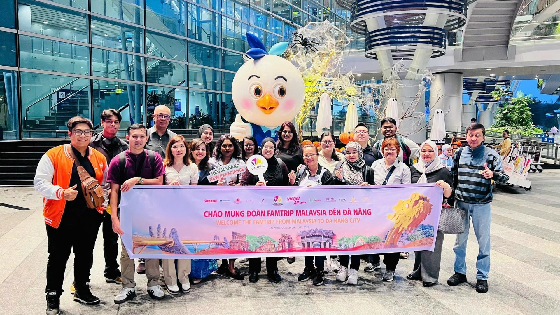 The Malaysian famtrip delegation is welcomed at Da Nang International Airport. Photo: Ngoc Ha