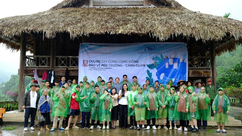 Teachers and students of the High School of Educational Sciences participate in the activity “Joining hands with the community to protect the environment and landscape” in Mo Hamlet. (Photo: Nguyen Son)