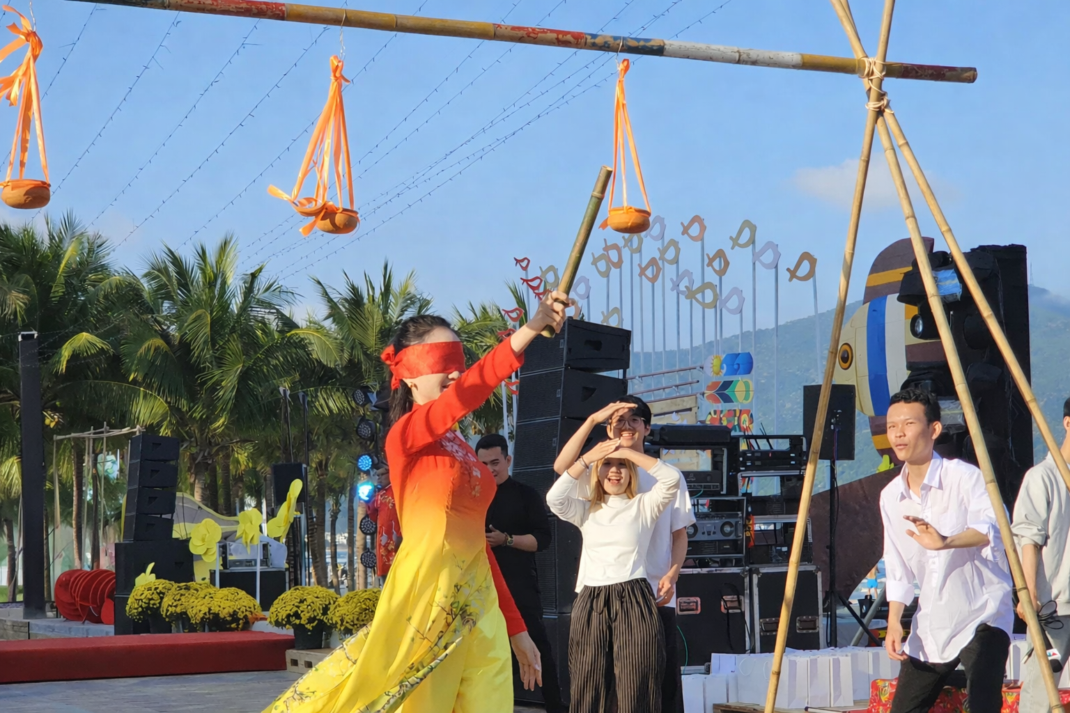 Visitors take part in folk games during the “Xuan Yeu Thuong 2026” program at the East Sea Park, An Hai Ward, Da Nang. Photo: Quoc Tuan