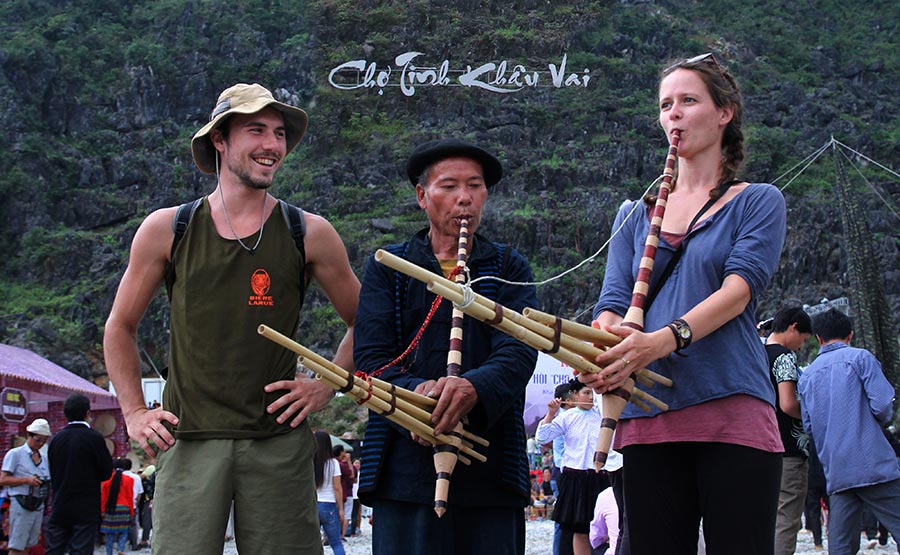 Du khách quốc tế trải nghiệm nhạc cụ khèn Mông