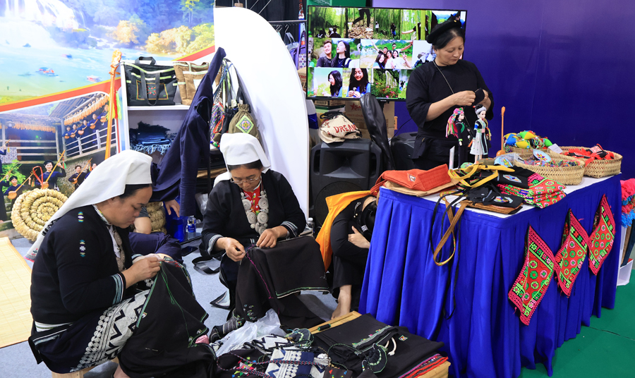 Giới thiệu sản phẩm, trình diễn nghề thủ công đồng bào dân tộc Cao Bằng (Ảnh: TITC)