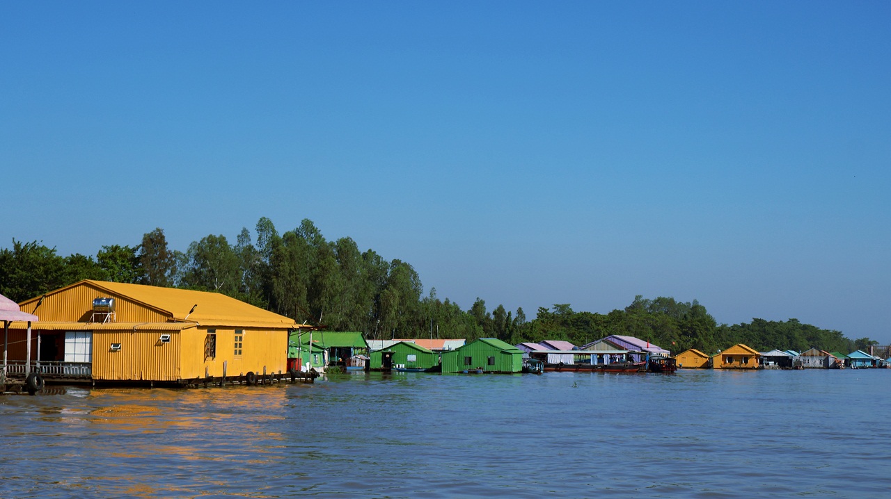 Làng bè sắc màu ngã ba sông Châu Đốc. Ảnh: TITC