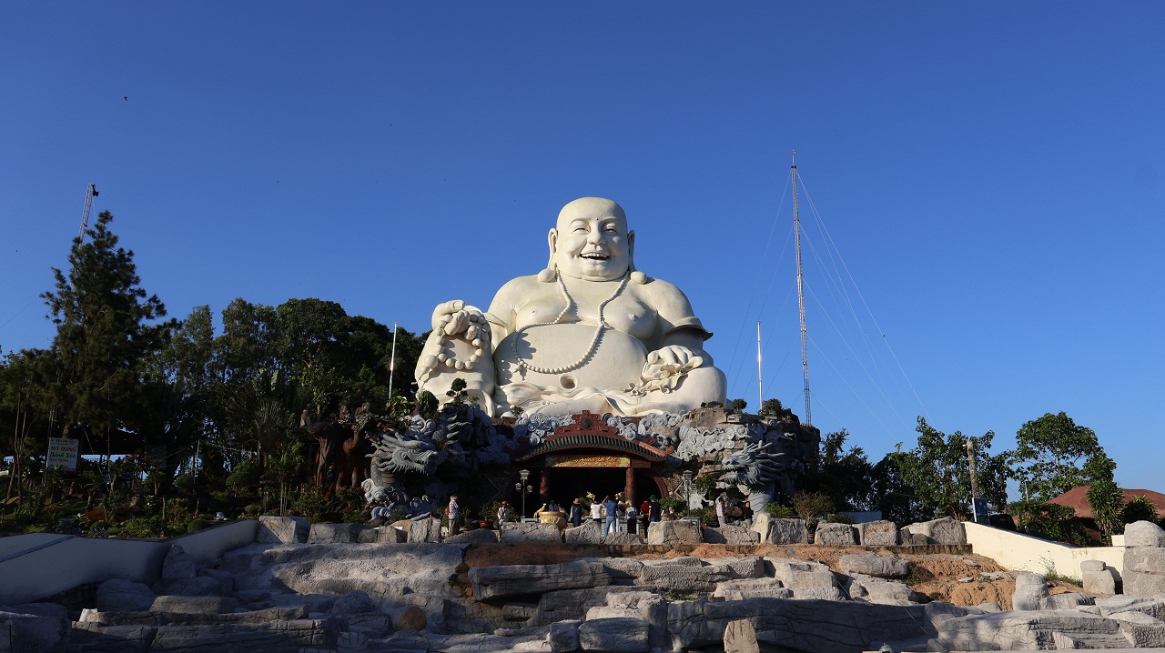 Tượng Phật Di Lặc trên đỉnh núi Cấm. Ảnh: TITC