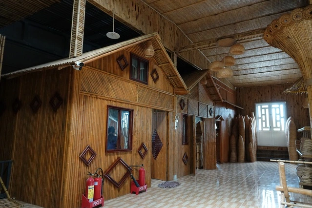 Phòng khách hoàn toàn bằng tre rất thân thiện và ấn tượng với du khách. Ảnh: HTX