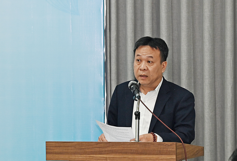 Phó Cục trưởng Hà Văn Siêu trình bày báo cáo tổng kết công tác năm 2025 và triển khai nhiệm vụ năm 2026. Ảnh TITC