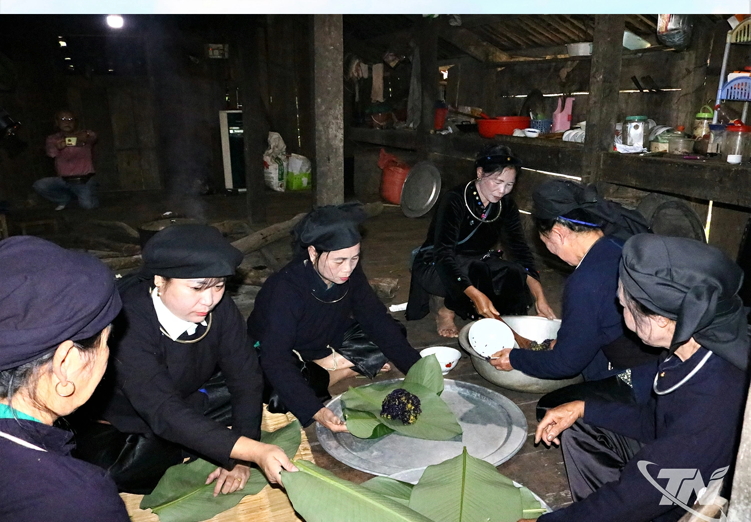 Đồng bào các dân tộc làm xôi trám đen phục vụ du khách.