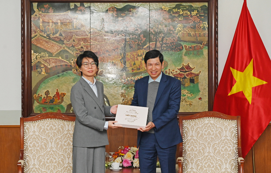 Thứ trưởng Bộ VHTTDL Hồ An Phong tiếp Phó Tổng Giám đốc Công ty TNHH Dịch vụ Kinh doanh Tập đoàn Du lịch Trung Quốc Uông Giao. Ảnh: TITC